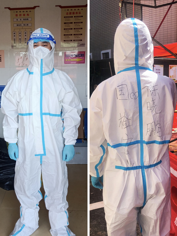 厦门宏业志愿者参与社区核酸检测工作,协助医护人员做好核算检测的信息登记工作。